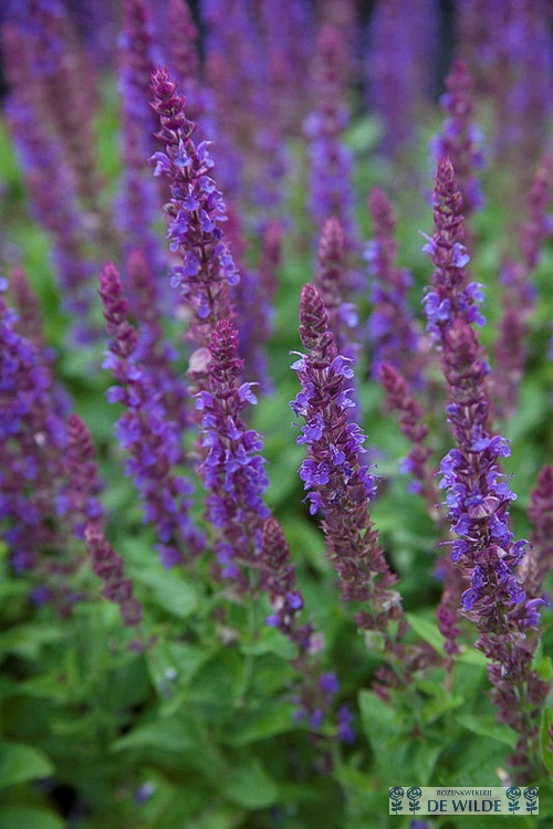 Salvia's zijn sterke planten die weinig eisen stellen. De Ostfriesland heeft mooie paarsblauwe bloemen. Na de bloei behoudt hij zijn paarse schutbladeren tot in de herfst, wat de sierwaarde vergroot. 9 per vierkante meter. Het behaarde blad blijft ook lang behouden. In zachte winters zelfs tot aan het voorjaar. De salvia prefereert een plaats in de zon.