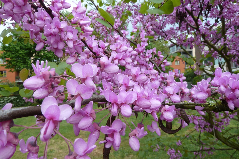 De judasboom bloeit met opvallende lichtroze tot paarse bloemen. Het is een naaktbloeier. Dit houdt in dat de bloemen groepsgewijs op de takken en de stam staan voordat het blad aan de boom komt. Dit zorgt voor een zeer mooi, opvallend effect.