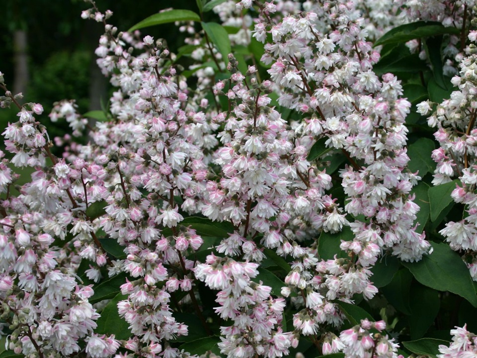In mei en juni verschijnen er aan deze plant grote pluimen met witte bloemen die veelal roze tinten vertonen. De bloei is soms zo rijk dat ze de plant grotendeels bedekken. Deutzia's bloeien op tweejarig hout en vormen een belangrijke aanwinst in de tuin omdat ze in de voorzomerrust bloeien. De voorjaarsbloeiers zijn dan vaak op hun einde en de zomerbloeiers moeten nog beginnen. Als de struik in de volle zon staat, krijgt deze de meeste bloemen. Na de bloei worden de uitgebloeide takken weggenomen tot boven een punt waar een jonge scheut ontspringt (circa een kwart tot 1/3 van de tak weghalen). Ook zwakke takken worden verwijderd. De scabra 'plena' is een wat ruiger soort en wordt dan ook tot 2.5 meter hoog.