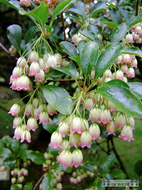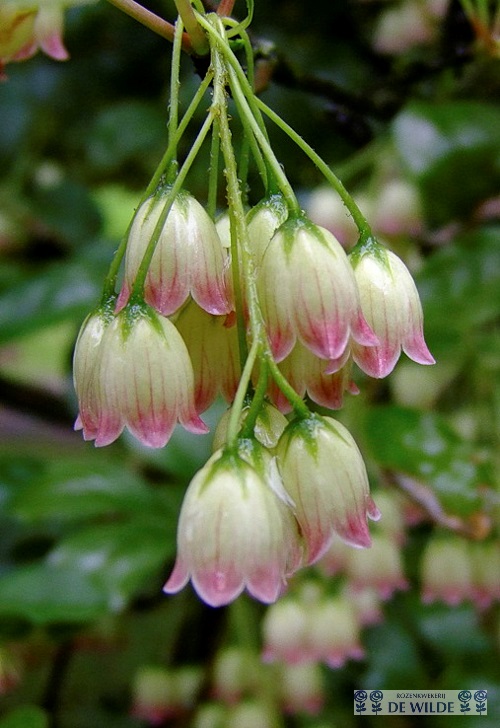 De enkianthus campanulatus bloeit met grote trosjes geelroze bloemetjes. Deze hangen aan de plant. De bloei begint eind april en is erg rijk. In augustus verschijnen er bruine vruchten, die tot de winter aan de plant blijven hangen. In het najaar krijgt het blad schitterende herfstkleuren. Deze struik bij voorkeur niet in de volle zon zetten, maar in de halfschaduw. Bovendien prefereert hij zure grond.