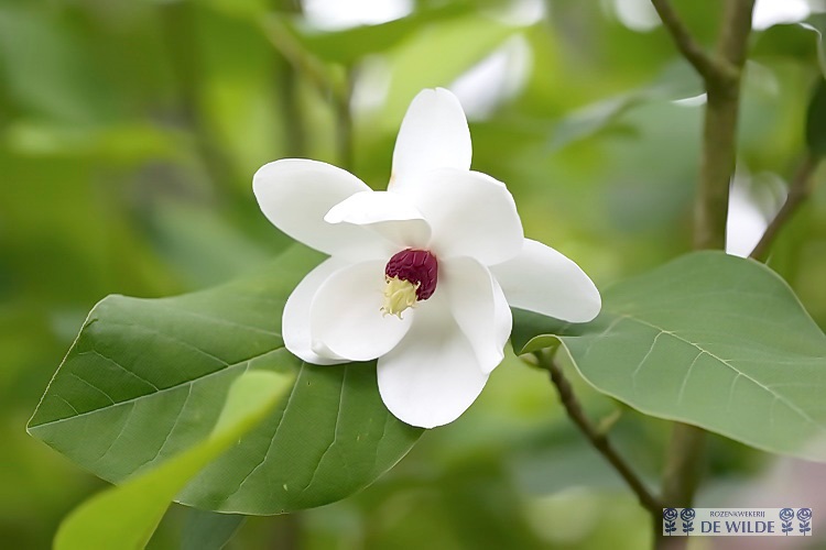 De witte bloemen van de magnolia grandiflora zijn 20-25 cm groot en verspreiden een aangename geur. Na de bloeiperiode verschijnen er atisjokachtige vruchten. Het blad is donkergroen en langwerpig en blijft in de winter behouden. In het Nederlandse klimaat zal de boom niet hoger worden dan zo'n 8-10 meter. Prefereert een beschutte plaats in de zon.
