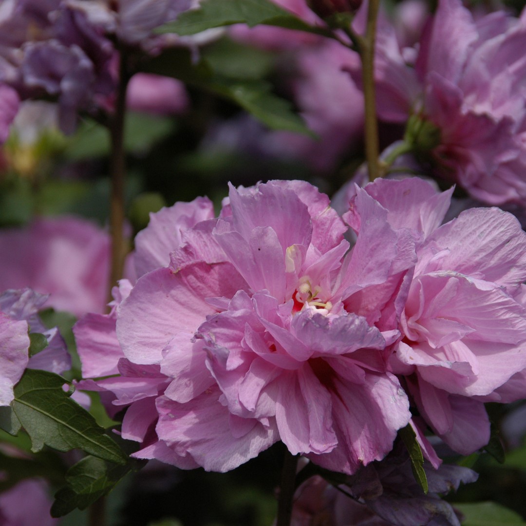 Hibiscus syriacus 'Ardens' bloeit van juli tot en met september met
