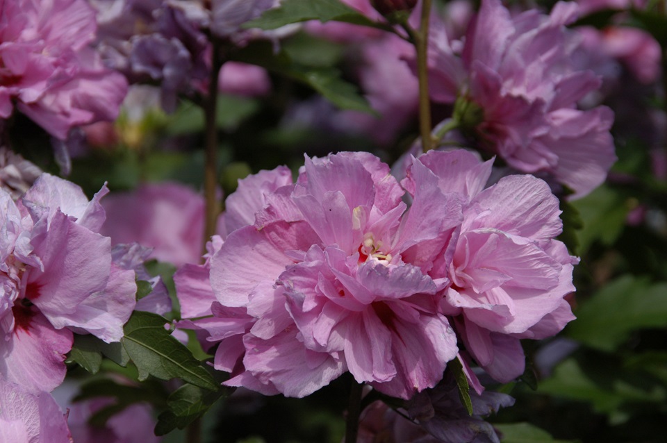 mooie dubbele, lila bloemen. Zonder snoei groeit de tuinhibiscus uit tot