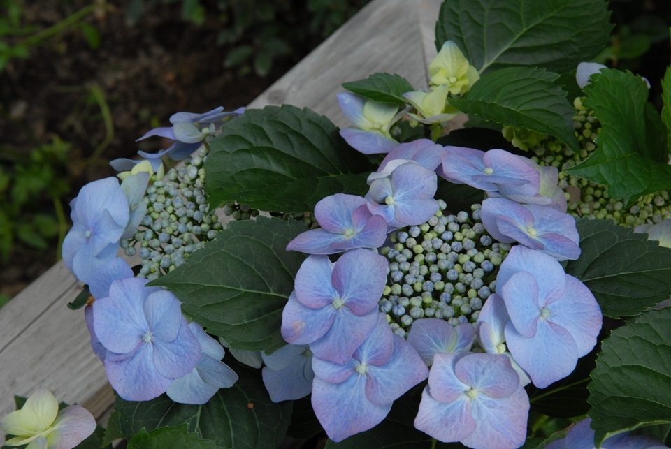 De ´Hydrangea macrophylla Blaumeise´ bloeit, in juli tot in september, vol met blauwe shermvormige bloemetjes. Deze hortensia wordt ongeveer 100 cm hoog en dient in het voorjaar licht gesnoeid te worden. Net als de andere hortensia´s, geeft deze hortensia een voorkeur aan een plek in de zon en heeft behoefte aan een grond met vocht.