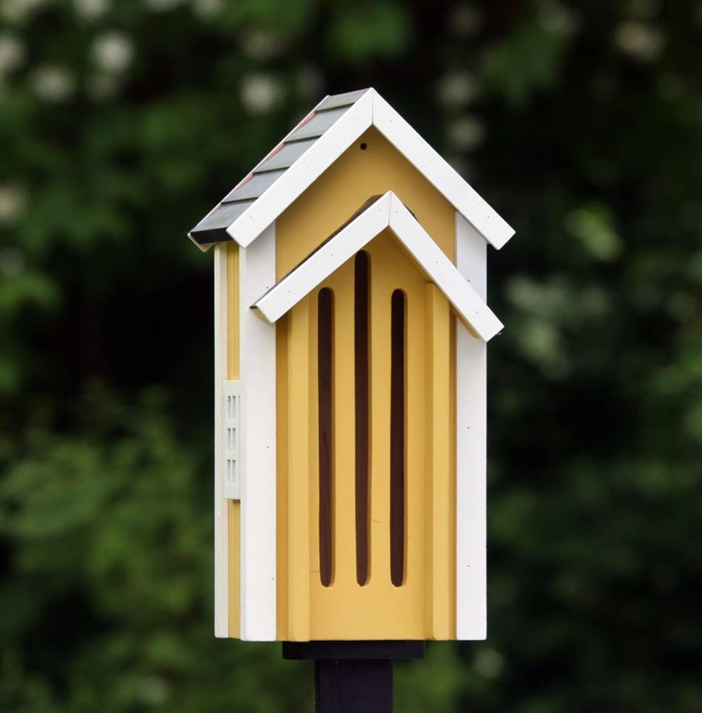 Nectarrijke struikjes, bescherming tegen de wind en een plekje om te schuilen tegen het herfstweer. Dit zijn omstandigheden/voorwaarden die vlinders trekken naar de tuin. De vlinderkasten zijn net als de Multiholks ontworpen als een miniatuurhuisje. Niet alleen erg decoratief maar ook erg geliefd bij vlinders zoals de Kleine Vos, de Dagpauwoog en de Citroenvlinder die graag in een gat kruipen voor een winterslaap tijdens de late herfst en winter. Door de vlinderkast te vullen met schors creëert men een omgeving die een goede bescherming biedt tegen regen, wind en kou. Het vlinderhuisje is beschikbaar in rood en geel uitvoering voor diegene die graag het huis zelf schildert in een kleur naar keuze.