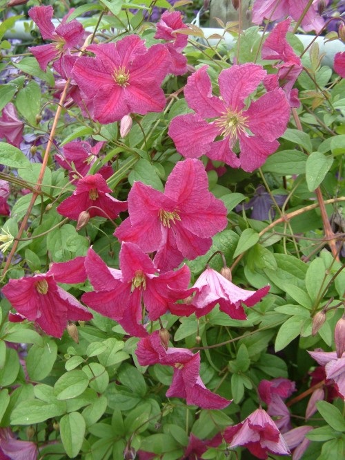 paarsrood kleurige bloem met een grootte van 5 tot 6 cm. Bloeit van juli tot en met september. Hoogte van de plant is 300 cm.