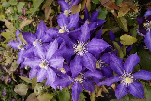 De clematis 'Daniel Deronda' bloeit mooie grote violet-blauwe bloemen met een diameter van 10-15 cm. Deze plant heeft 2 bloeiperiodes namelijk van mei tot juni, na deze bloei bij snoeien, en dan zal de plant opnieuw bloeien in juli en augustus.