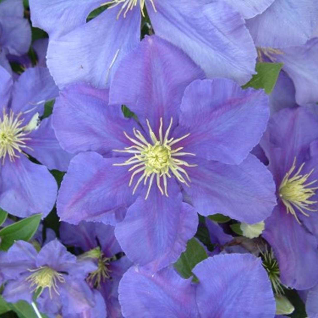 Paarsblauwe bloemen met een diameter van 12-15 cm. Bloeit van mei tot en met augustus. Snoeihoogte is 75 cm.