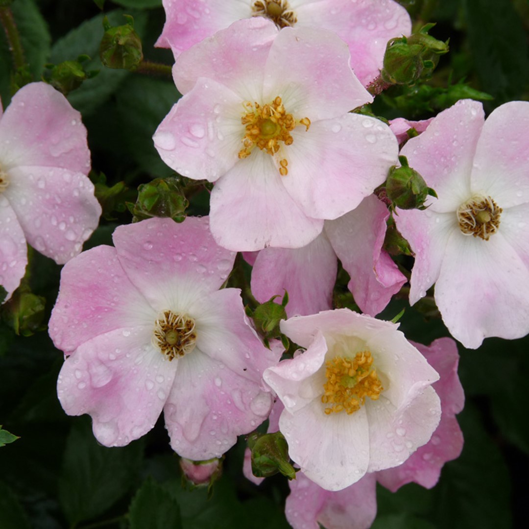 Deze struik bestaande uit enkelvoudige, roze, bloemen heeft een opgaande groei. Het groene blad kleurt naar mooie roodoranje kleuren in de herfstperiode. Na de bloei krijgt de struik mooie ronde oranje bottels.