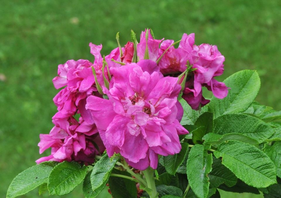 struik grote, rode bottels. Een sterke roos met een krachtige geur.