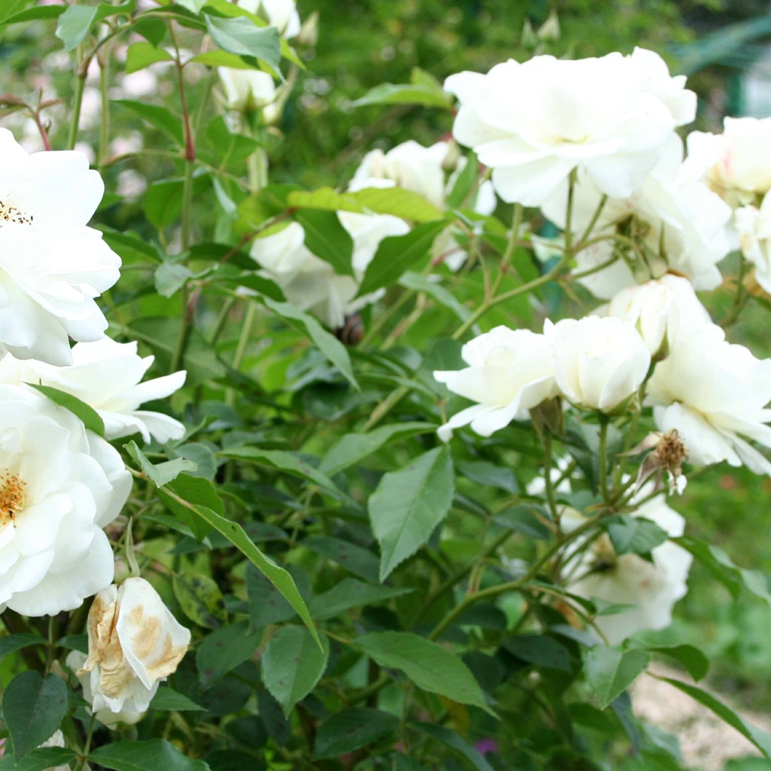 lijkt deze roos extra charme te hebben. Trossen middelgrote, witte