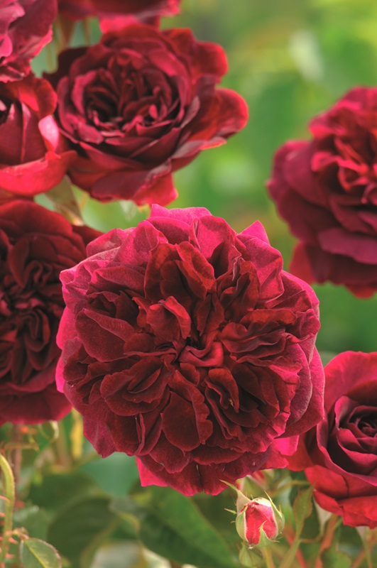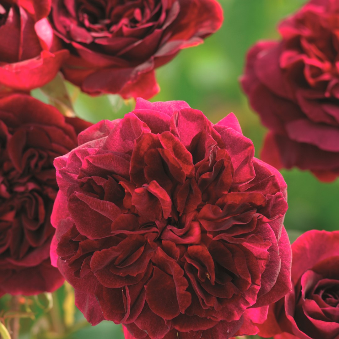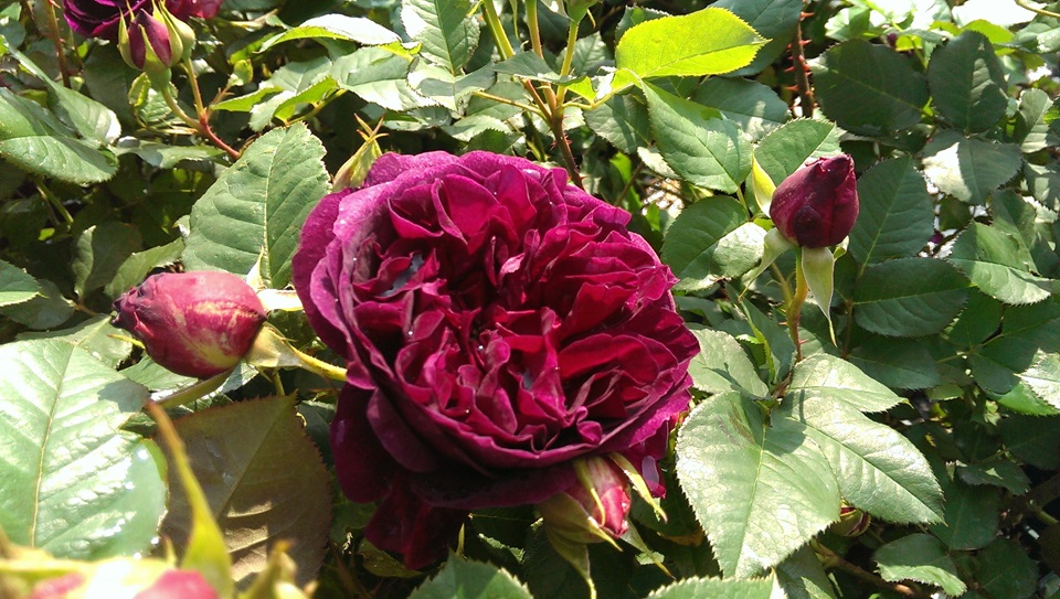 De bossige struik vormt prachtige, roodpaarse bloemen. Ze zijn erg groot