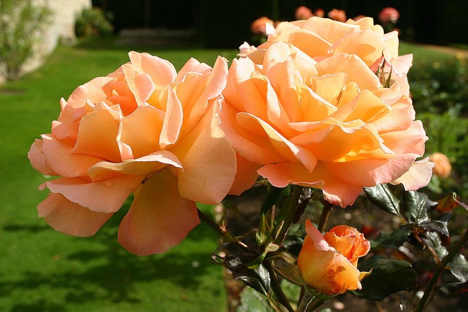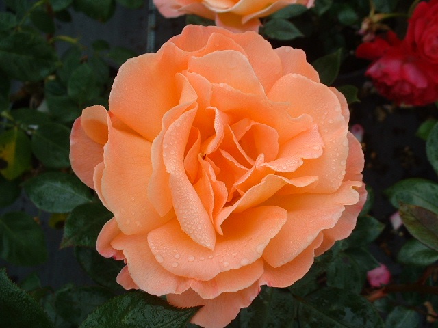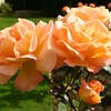 Goed ziekteresistente roos. Mooie oranje/abrikoos kleurige halfgevulde grote bloemen die lekker geuren.
