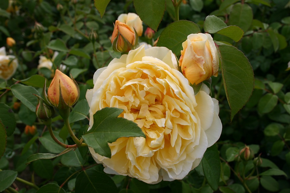 mirregeur van de Engelse roos. 110 x 90 cm. Plant 3 rozen per m2.