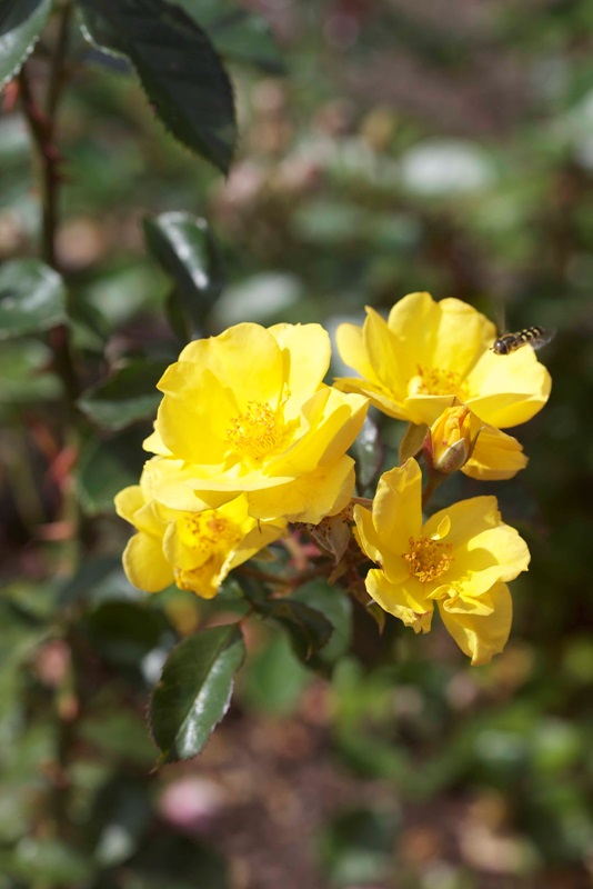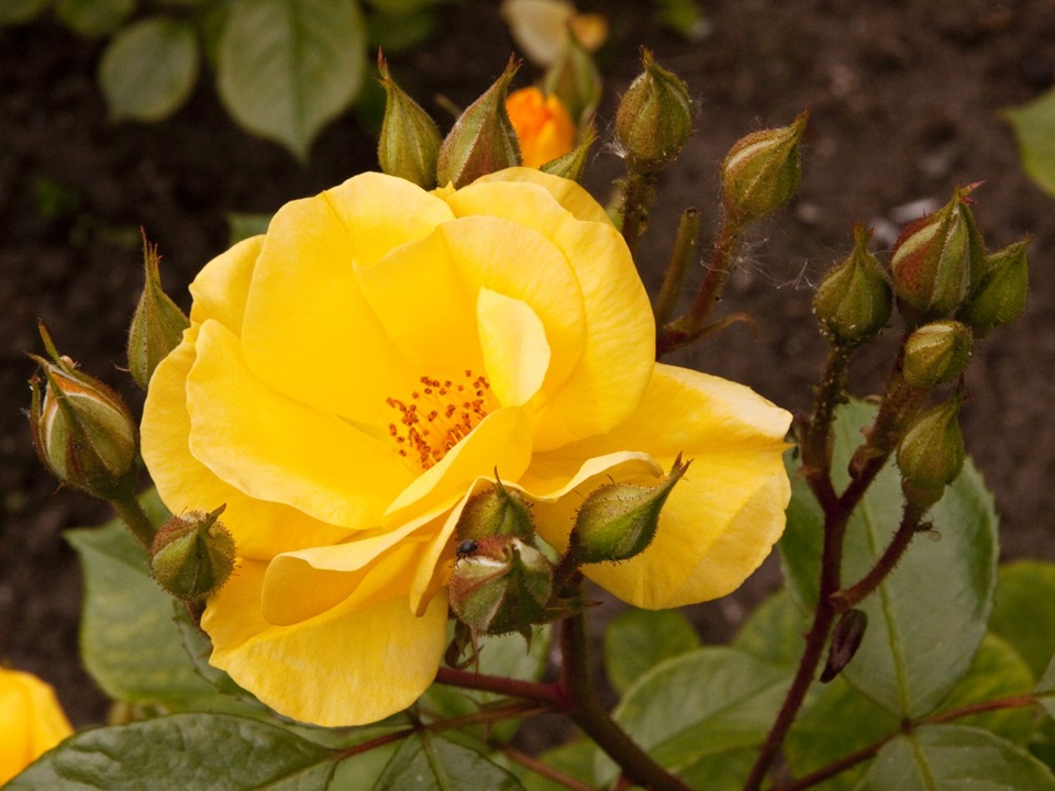 Deze TOP®-roos heeft gele, enkele bloemen met oranje meeldraden. De brede struik is sterk en betrouwbaar. Plant 3 rozen per m2.