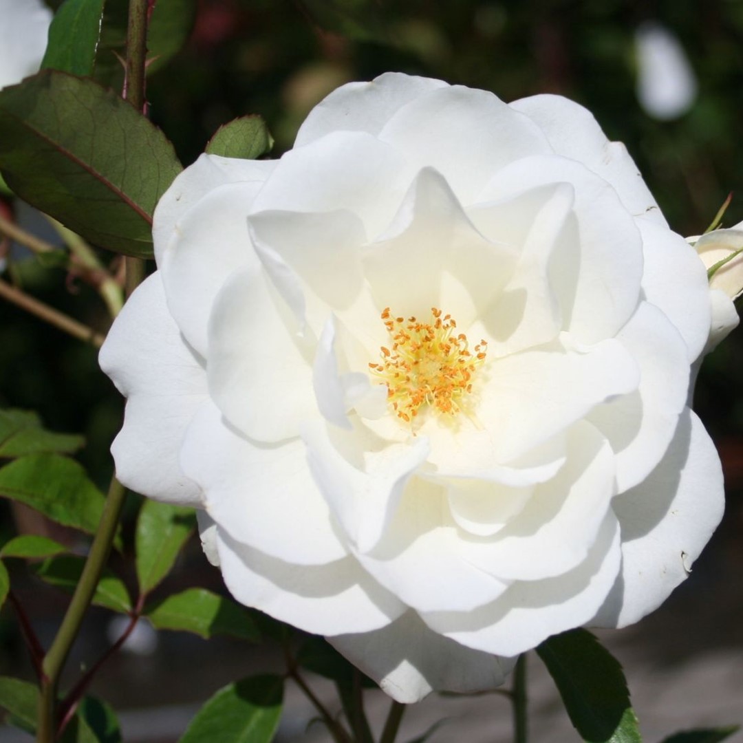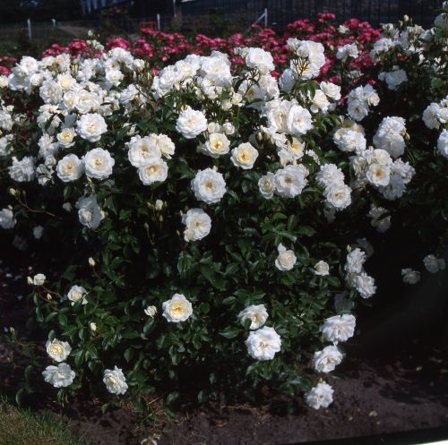 Een van de beste trosrozen. Mooie knoppen openen tot middelgrote, gevulde, zuiverwitte bloemen. Zeer continue bloei, soms tot in de winter. Geurig. Als hij licht teruggesnoeid wordt, vormt hij een kleine heester. Plant 3 rozen per m2.