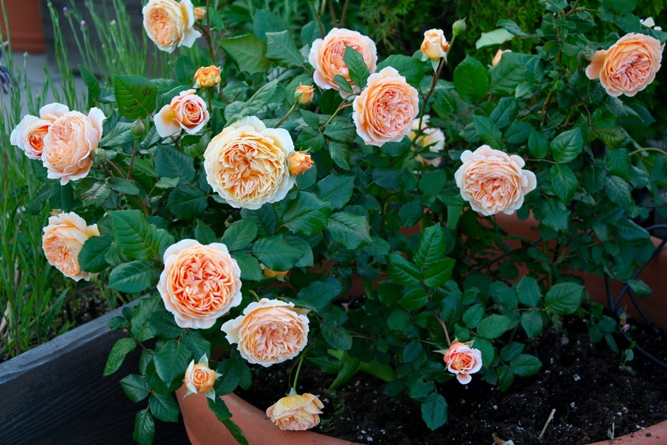 Een lange wat gebogen struik die ideaal is achter in een border. De bloemen zijn behoorlijk groot en vormen nette rozetjes in een prachtige abrikoosoranje tint. Deze roos behoort tot de ‘Leander’-groep en hij zal het ook prima doen onder minder ideale omstandigheden. Hij heeft een sterke, fruitige geur van het type theeroos. 175 x 150 cm. Plant 3 rozen per m2.