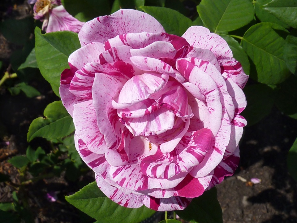 Een van de meest verfijnde gestreepte rozen, die ook nog goed herbloeit.