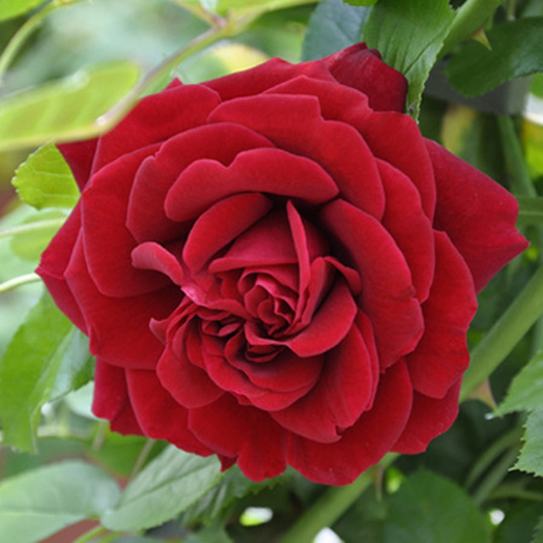 Deze klimroos is sterk gevuld en donkerrood van kleur. Oorspronkelijk was dit soort bekend als snijroos. Hij verspreidt een aangename maar lichte geur en doet het goed op pilaren en bogen. Hoogte 250 cm. Plant 3 rozen per m2.