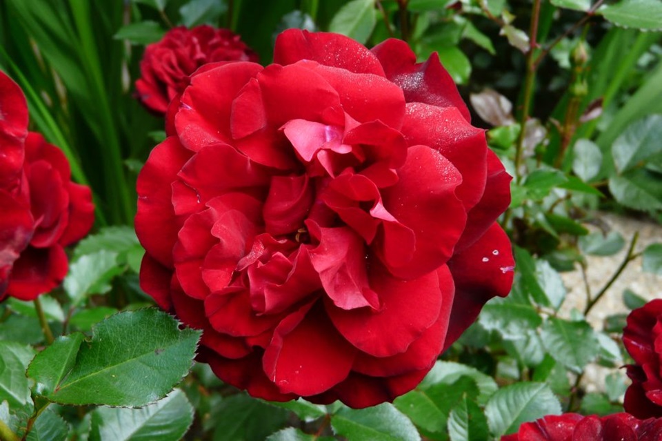 Een prachtige roos uit de renaissance serie. In dit geval met dieprode, gevulde bloemen. Ze verschijnen aan een wat hogere, opgaande struik en hebben een aangename, sterke geur. Het blad is donkergroen en gezond. Rijkelijk doorbloeiend. Maximale hoogte 130 cm.