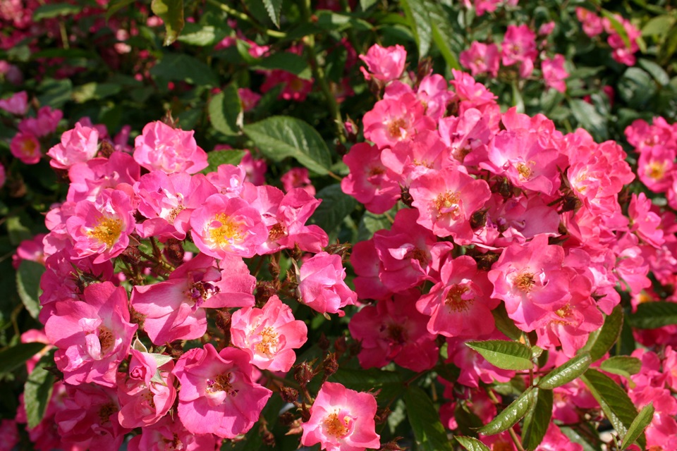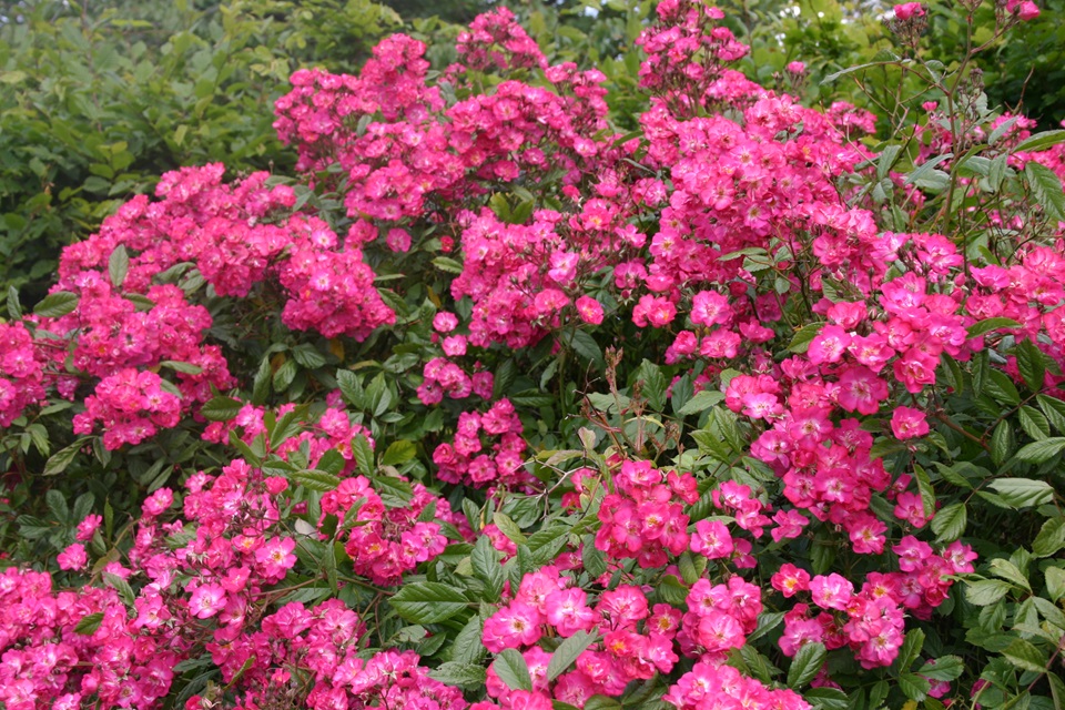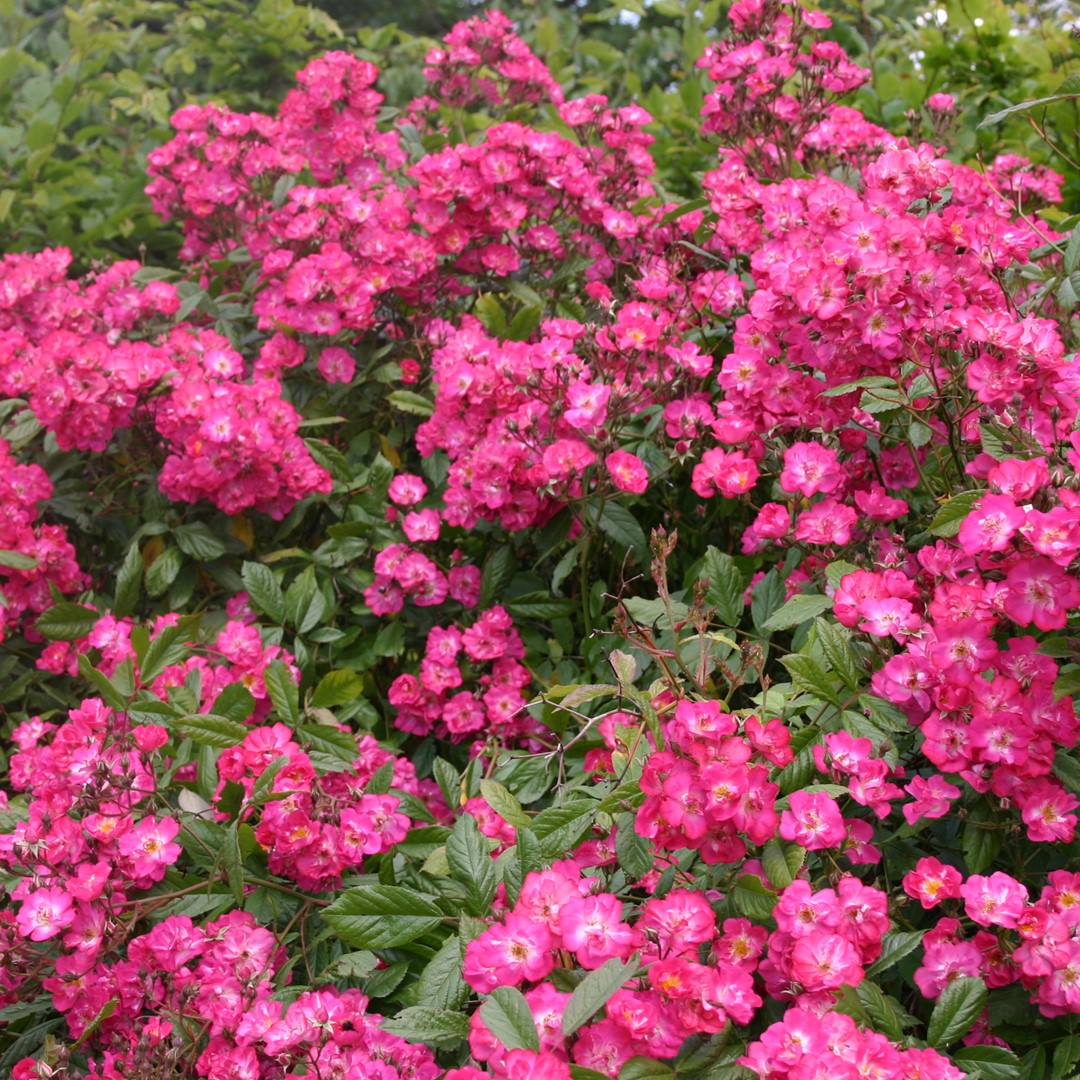 Grote trossen met kleine, roze, halfgevulde bloemetjes verschijnen aan deze geschikte, doorbloeiende haagplant. 80 x 80 cm