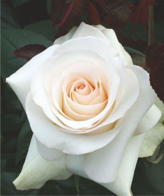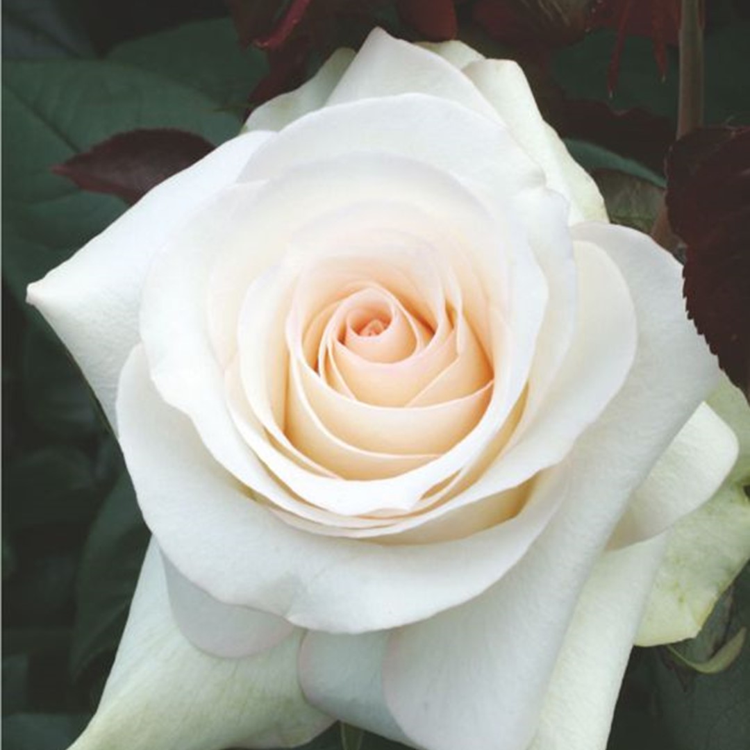 Verukkelijke grote crèmewitte bloemen met een groene zweem, lijkt op champagne. De bloemen zijn heerlijk geurend, elegant en perfect symmetrisch, met een mooie zwerm bloemblaadjes rond een hoog geplaatst centrum. De groei is compact en bossig met donker groene blaadjes. Hierdoor steken de bloemen prachtig af tegen de donkere achtergrond.