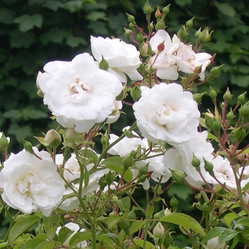 Een prachtige, zuiverwitte roos met kleine, halfgevulde bloemen en een aangenaam karakter. Een lange, klimmende/kruipende groeiwijze en een heerlijk frisse geur heeft deze late bloeier. In feite is dit de verbeterde ‘White Dorothy’. Deze roos is ook een prima treurroos. 600 cm