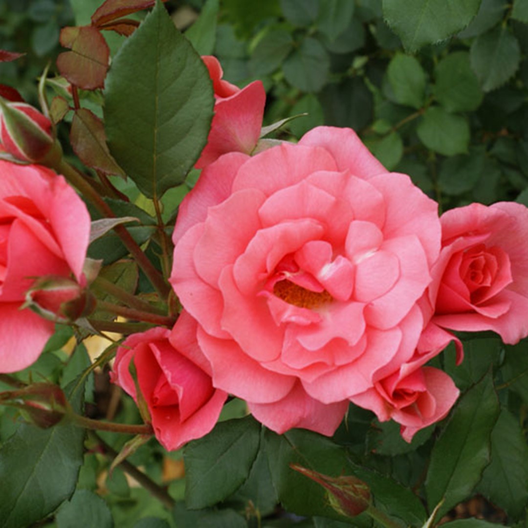 Al 35 jaar lang produceert deze fraaie, betrouwbare snijroos koraalroze bloemen met een voortreffelijke frisse geur. Hij bloeit al vroeg in het seizoen en heeft middengroen blad. Plant 3 rozen per m2.