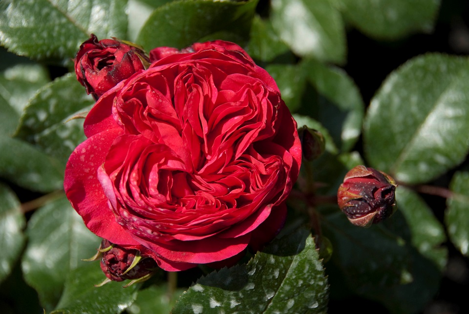 Dit is de rode variant van de beroemde roos 'Leonardo da Vinci'. Een
