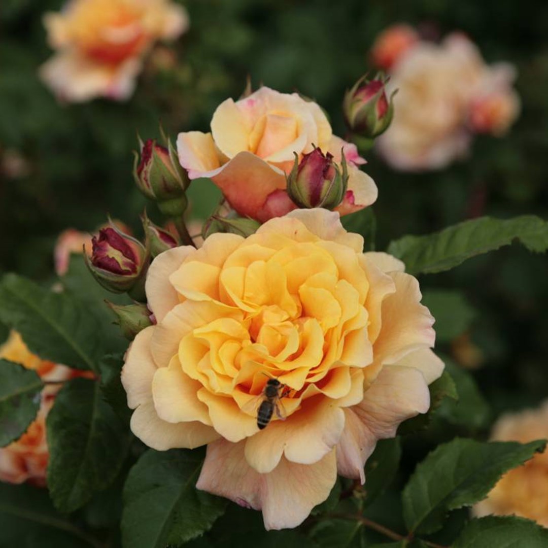 De 'Caramella' is een doorbloeiende, Engelse roos met grote, sterk gevulde bloemen in een geel/oranje kleur. Het is een rijkbloeiende, robuuste struik met groot blad. De plant heeft een maximale groeihoogte van ongeveer 120 cm. Plant 3 rozen per m2.