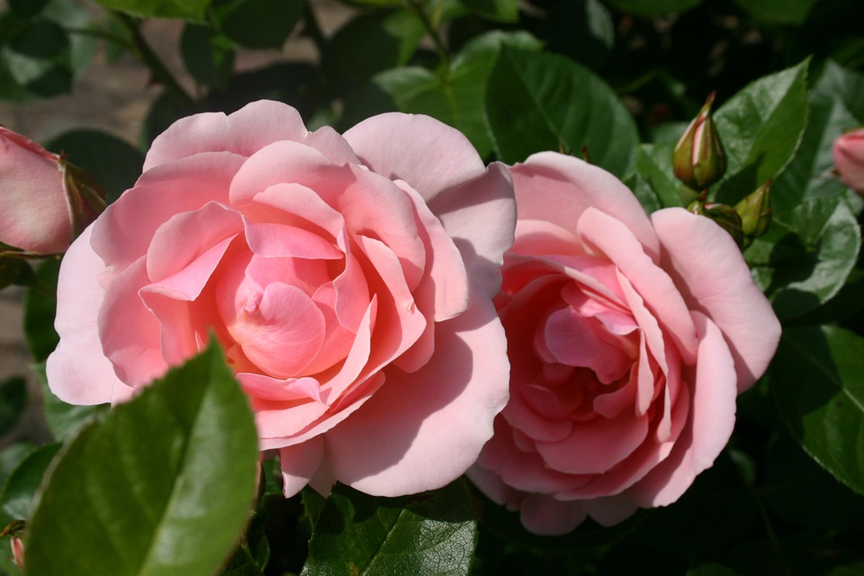 Warmroze bloemen, halfgevuld in grote trossen, en frisgroen blad dat lang blijft, hebben deze betrouwbare roos het predikaat TOP-roos bezorgd. Plant 3 rozen per m2.