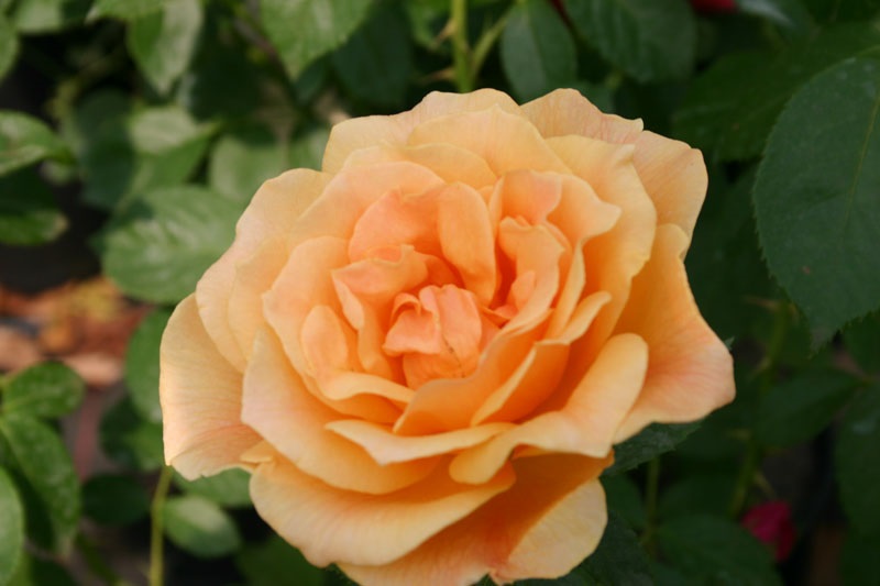 glimmend middelgroen blad. Deze roos is zeer geschikt voor perken. 90