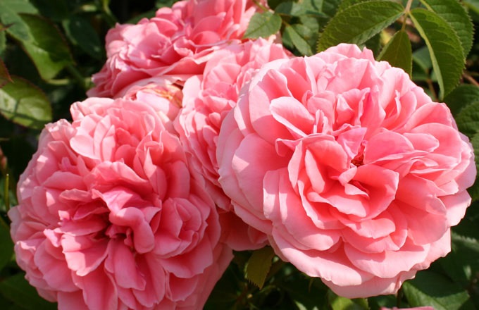 grote trossen bijeen hangen. De roos bloeit het hele jaar door, het