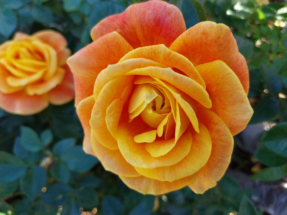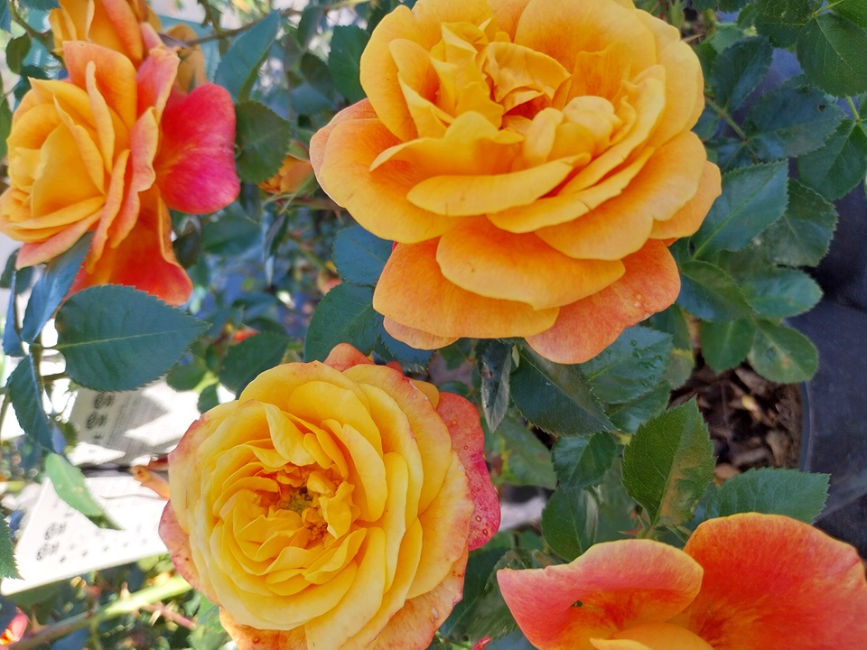 goudgeel, soms met roze zweem. Grote, zware bloemen, die volledig geopend het mooist zijn. Sterk en betrouwbaar.