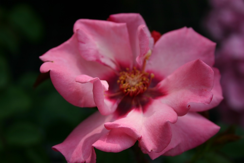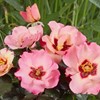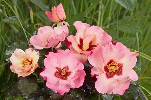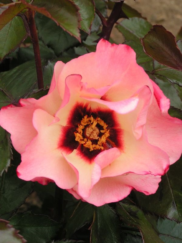 De halfgevulde bloemen zijn eerst crèmewit met een robijnrood hart, later verandert de kleur naar roze met bourgogne harten. De struik is mooi gevormd, open en bossig. De bloemen lijken op fladderende vlinders.