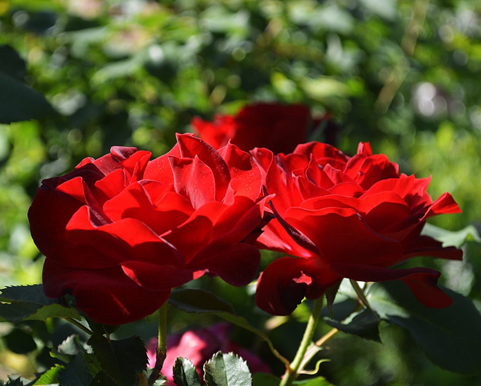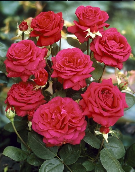 De grote bloemen van deze stevige groeier zijn donkerrood. Deze TOP-roos heeft donkergroen blad.