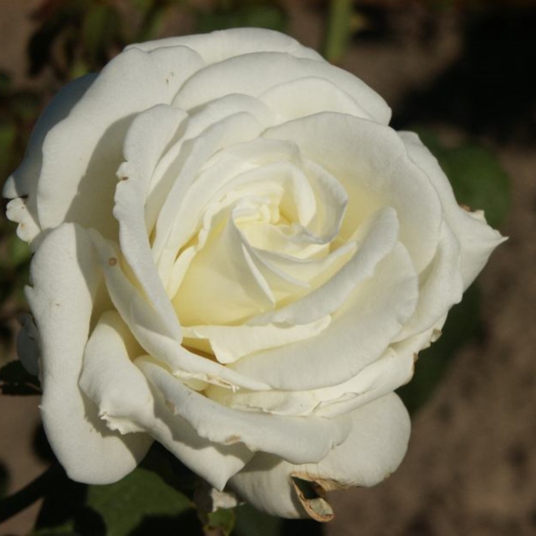 Zeer grootbloemig in crèmewit. De roos is goed