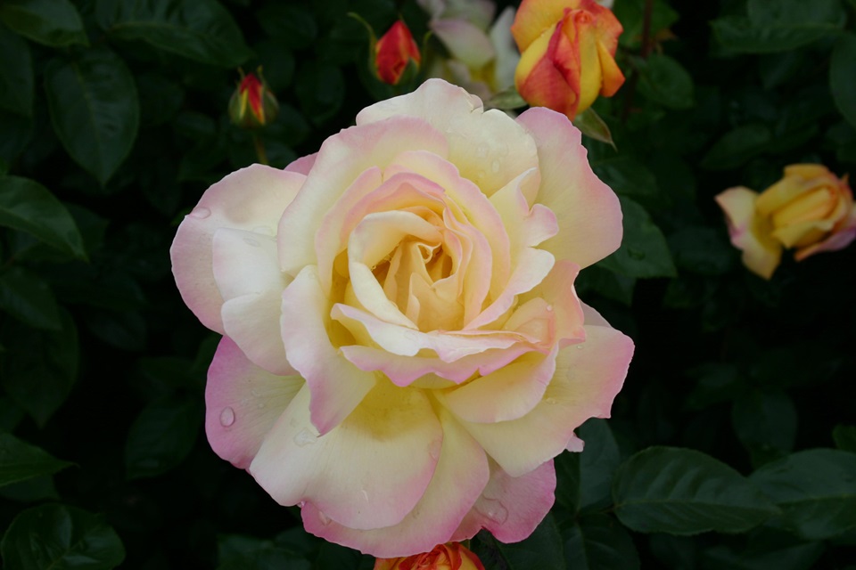 Lichtgeel, soms lichtroze getint. Grote, bolvormige en vrij zware bloemen, die geopend het best tot hun recht komen. Sterk en volledig betrouwbaar.