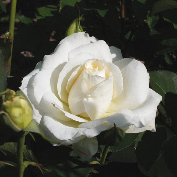 Een mooie grootbloemige roos met witte bloemen. Een zeer goede plant voor perken met een krachtige groei. De struik draagt bovendien veel blad. Ook geschikt als snijroos.