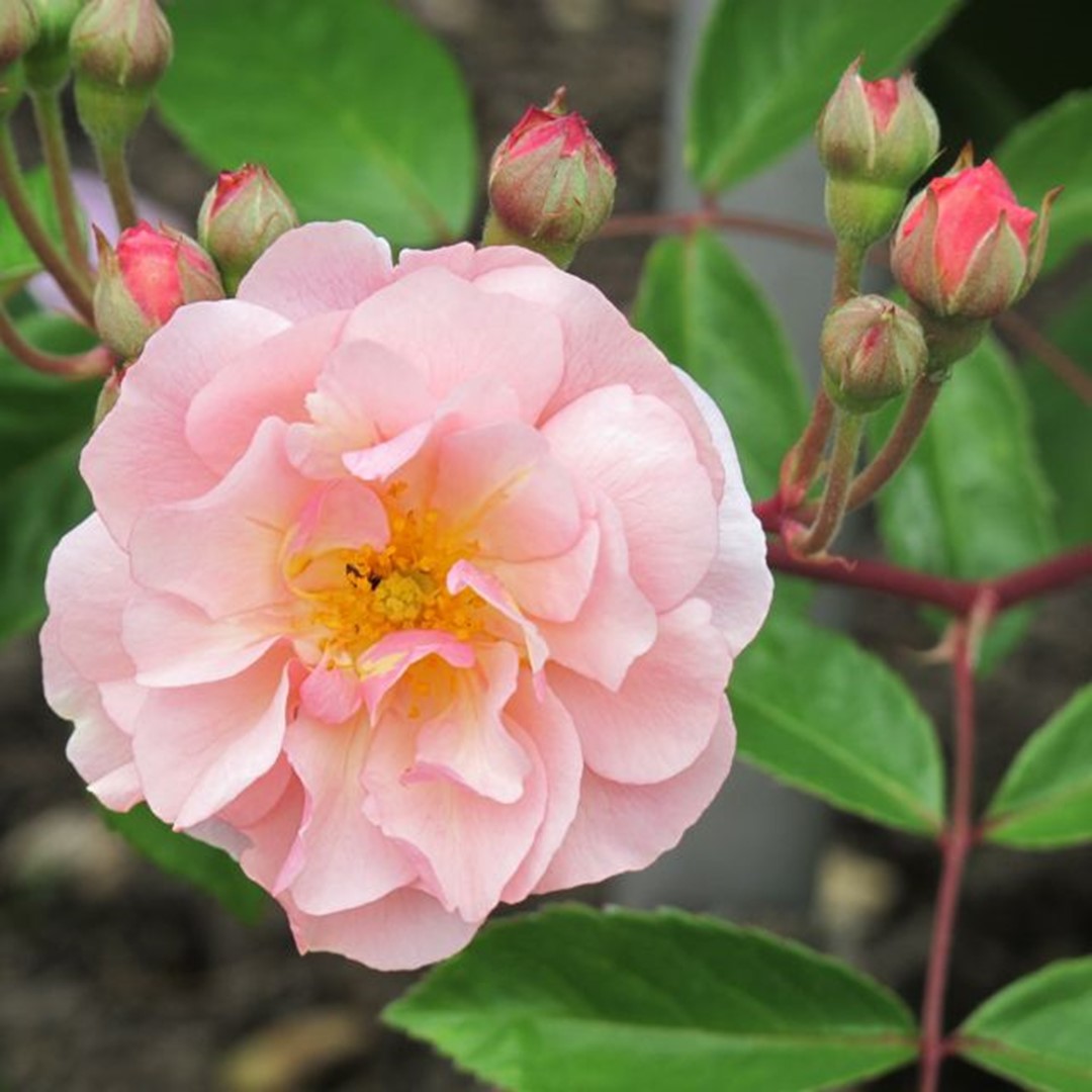 Kleine, formele bloemen in een rozetvorm die in grote trossen groeien. De bloemen zijn koperkleurig abrikoos, verbloeiend naar koperachtig roze. Een sterke plant met goed, donkergroen blad. Zeer geurig en herbloeiend. Vormt een goede haag. 150 x 150 cm. Plant 3 rozen per m2.