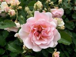 Mooie heesterroos met zacht roze pastelkleur. het is een doorbloeier met een heerlijke geur.