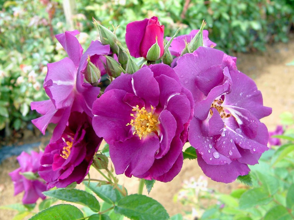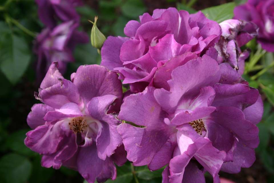 Blauw-paarse bloemen die lekker geuren. Deze roos is doorbloeiend en geschikt als snijroos.