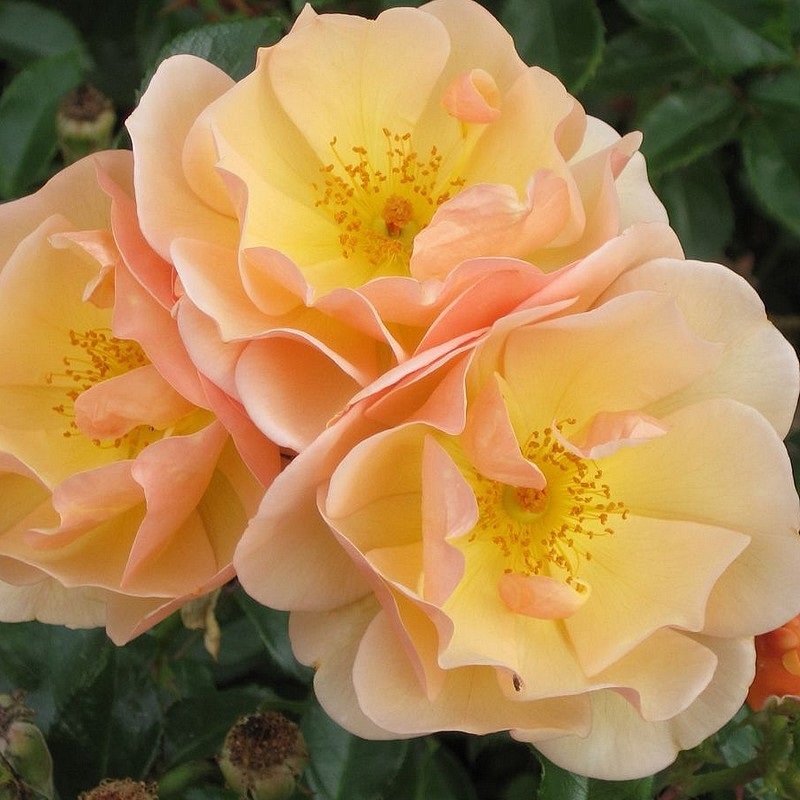 lichtgeurende roos met kopergele bloemen van ong. 5 cm doorsnee, die