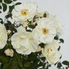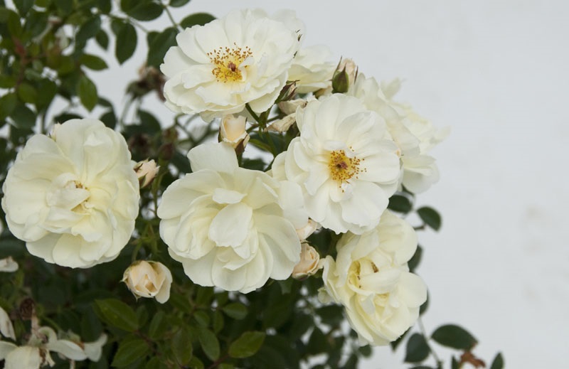 Grote trossen roomwitte bloemetjes en helder groen blad tooien dit fraaie, rijk bloeiende, lage struikje.