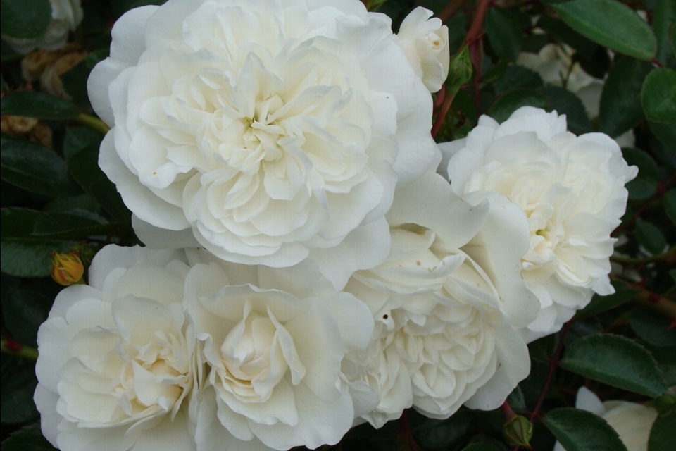 In het voorjaar moet deze roos goed teruggesnoeid worden. De gevulde sneeuwwitte bloem staat goed naar boven gericht en heeft een doorsnee van 5-8 cm. Het blad is donkergroen en glanst.