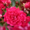Rosa 'Fairy Queen' is doorbloeiend met diep scharlakenrode bloemen.