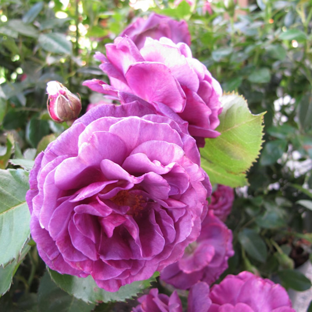 Zeer aparte kleur paars. Deze roos is bossig van groeiwijze en heeft gezond en sterk blad. De roos is grootbloemig zeer geurig en gevuld.