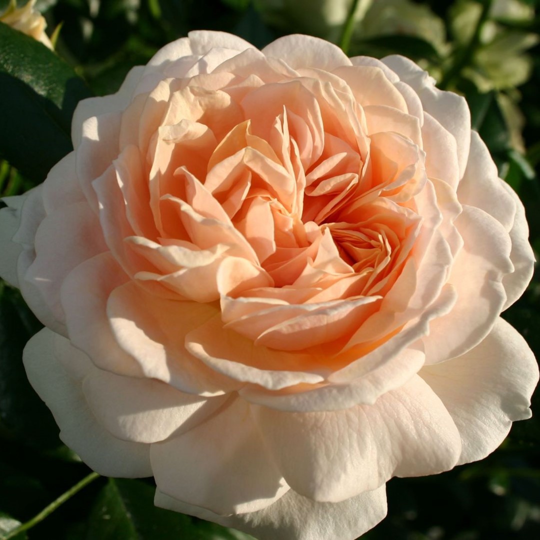 De bloemen zijn lichtroze met een iets abrikoos kleurig hart. Mooi glazend blad. Afkomstig van Kordes rozen.