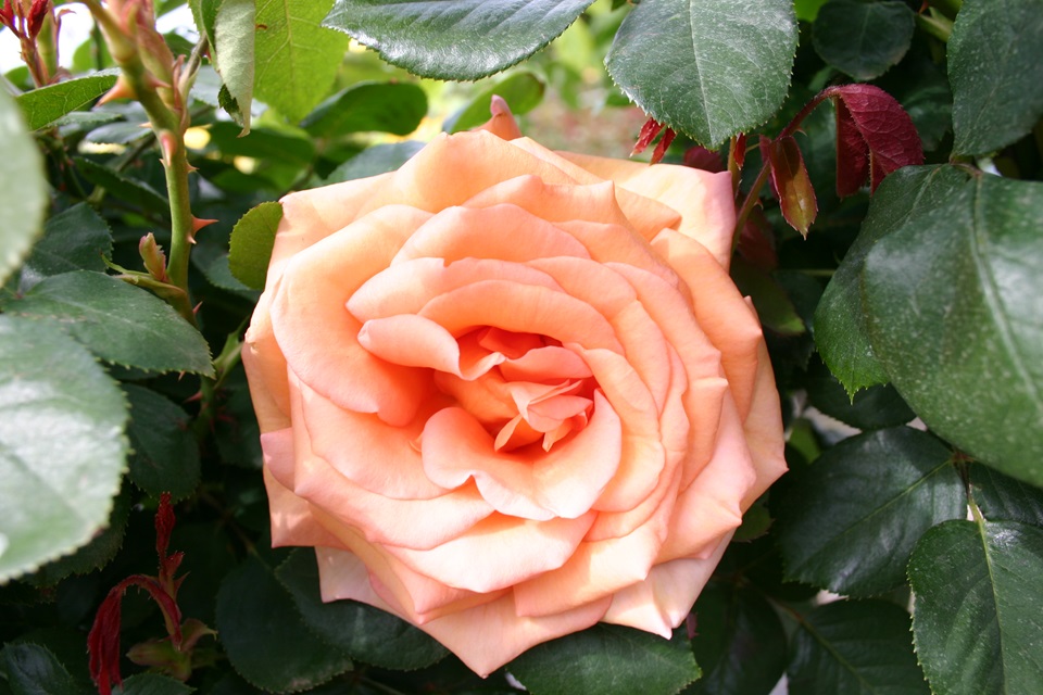 Een prachtige, goed doorbloeiende roos met hoog gecentreerde knoppen. Dit, samen met de sterke stelen, maakt het een prima roos om te snijden. De struik heeft veel donker, gezond blad en een mooie groeiwijze. De bloemen zijn perzikachtig koraal van kleur en zijn geurend.