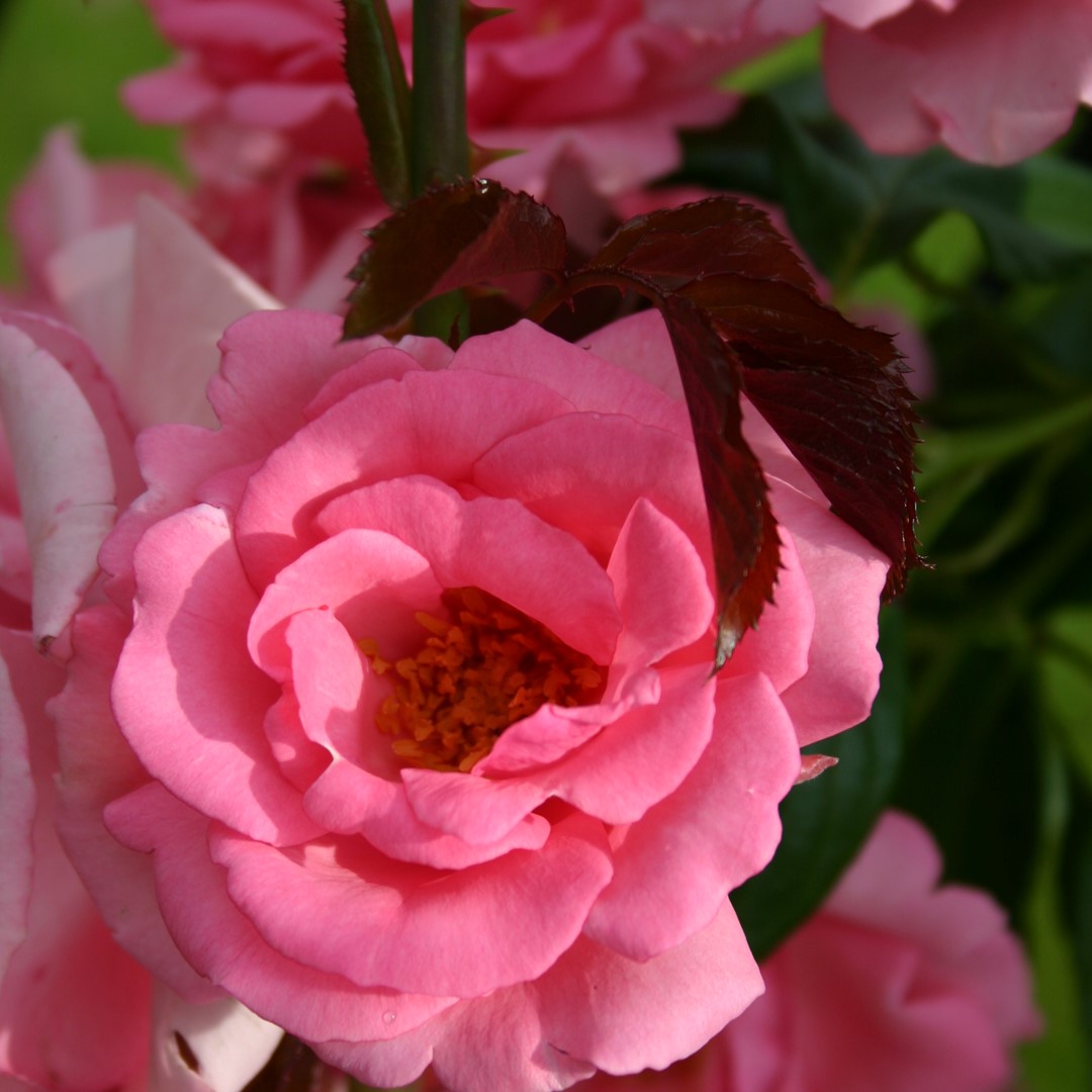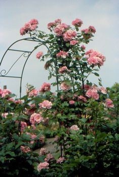 Zacht zuurstokroze, grote en halfgevulde bloemen heeft deze doorbloeiende roos, die heel sterk en gezond is en gemakkelijk te leiden takjes heeft.